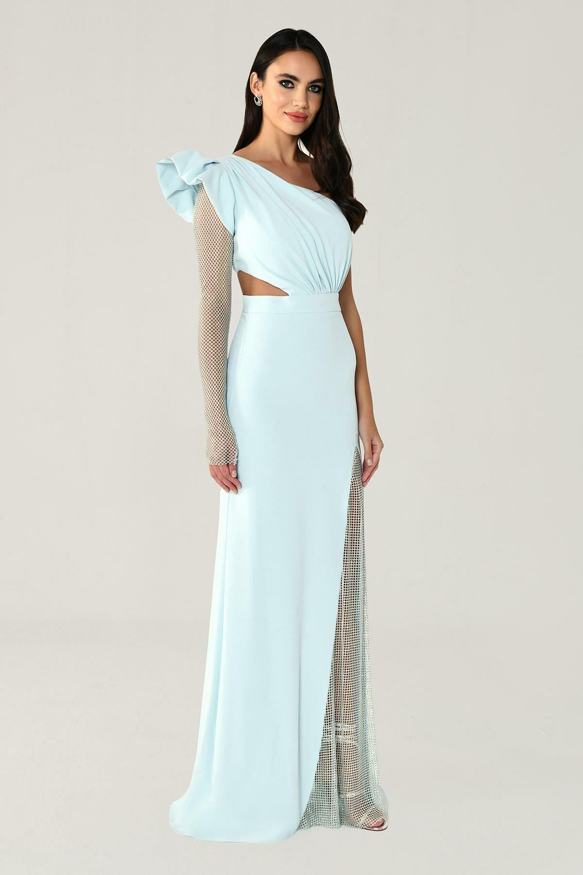 HANZADE ALTAYLITek Transparan Kol Yırtmaçlı Uzun Elbise