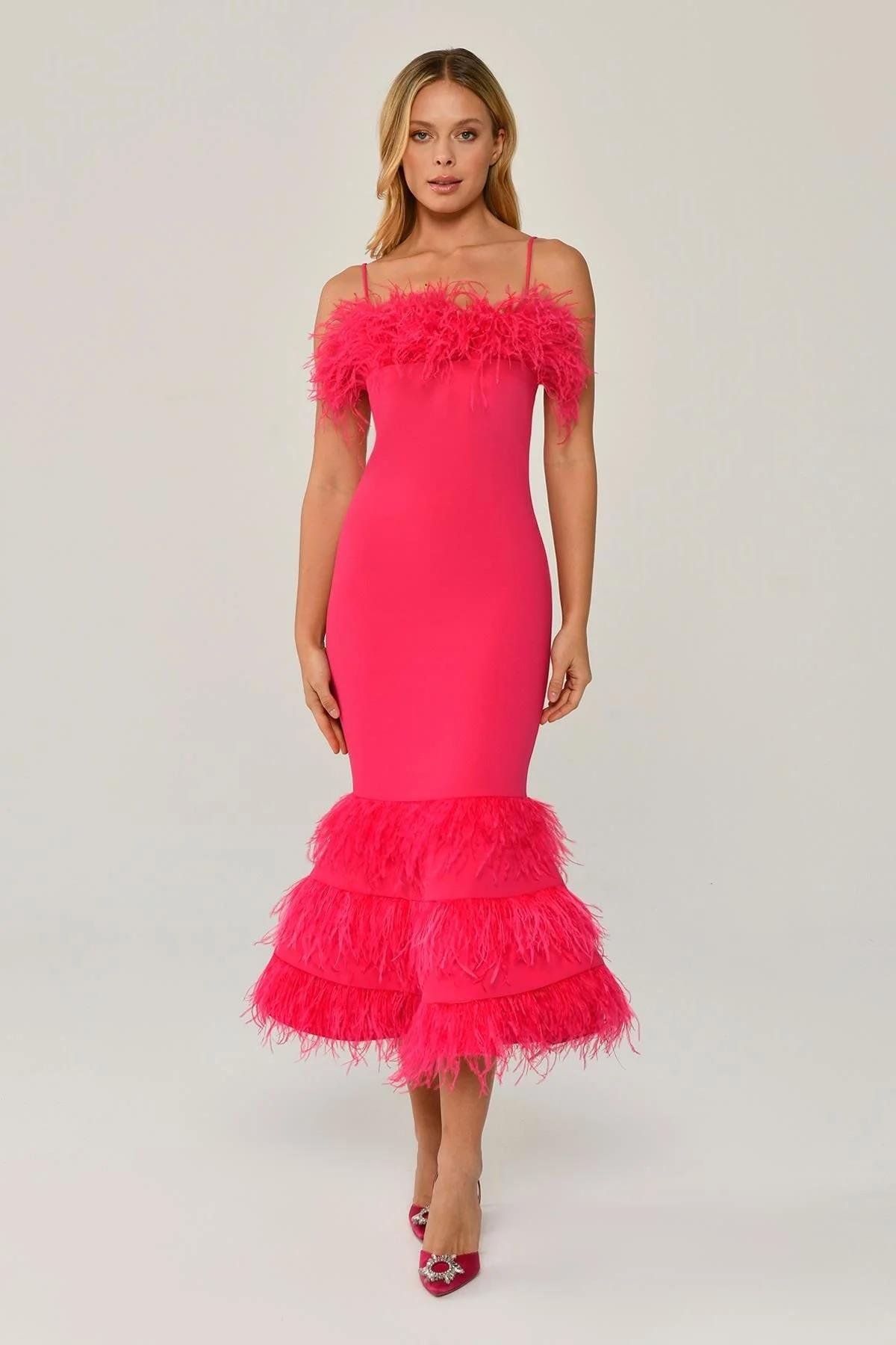 HANZADE ALTAYLIİp Askılı Göğüs Ve Eteği Tüylü Balık Midi Elbise