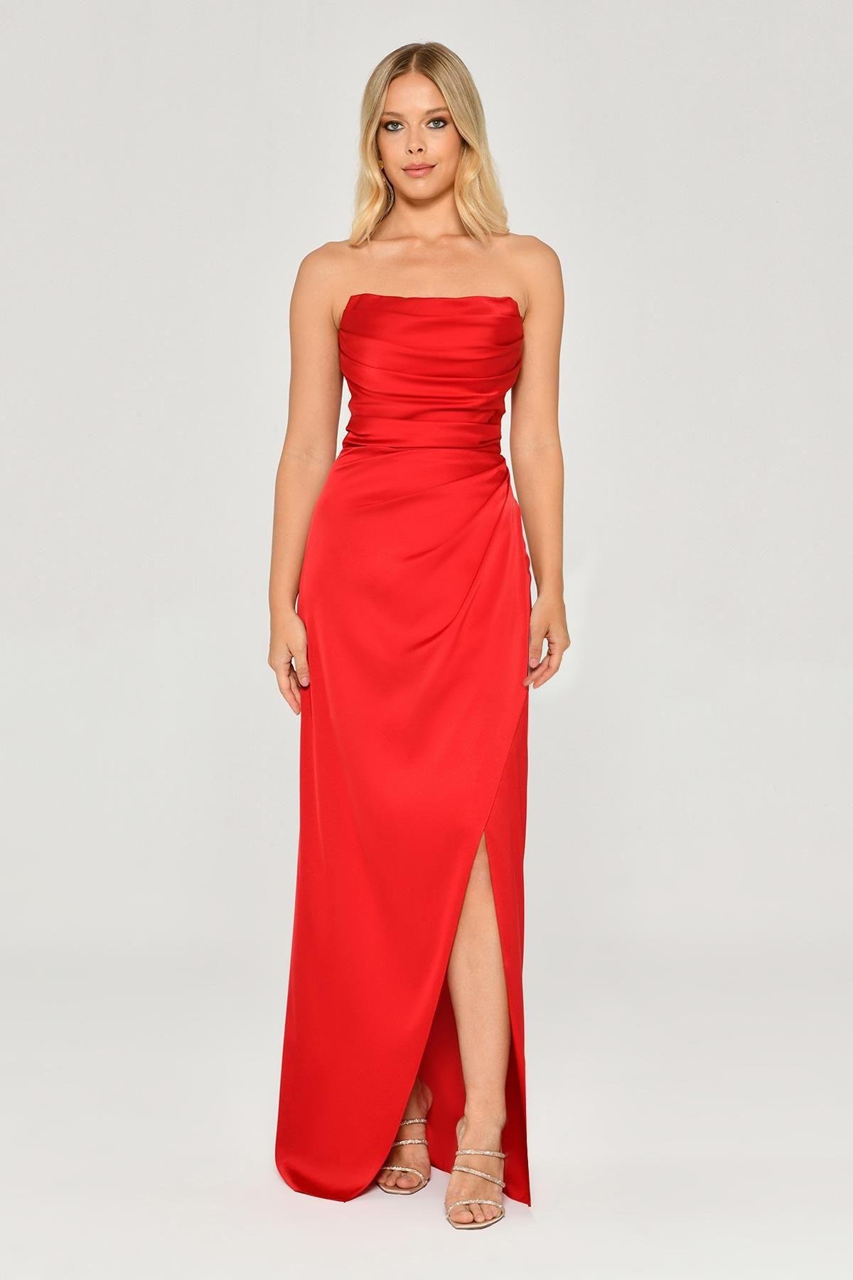 Straplez Saten Uzun Elbise (5804)