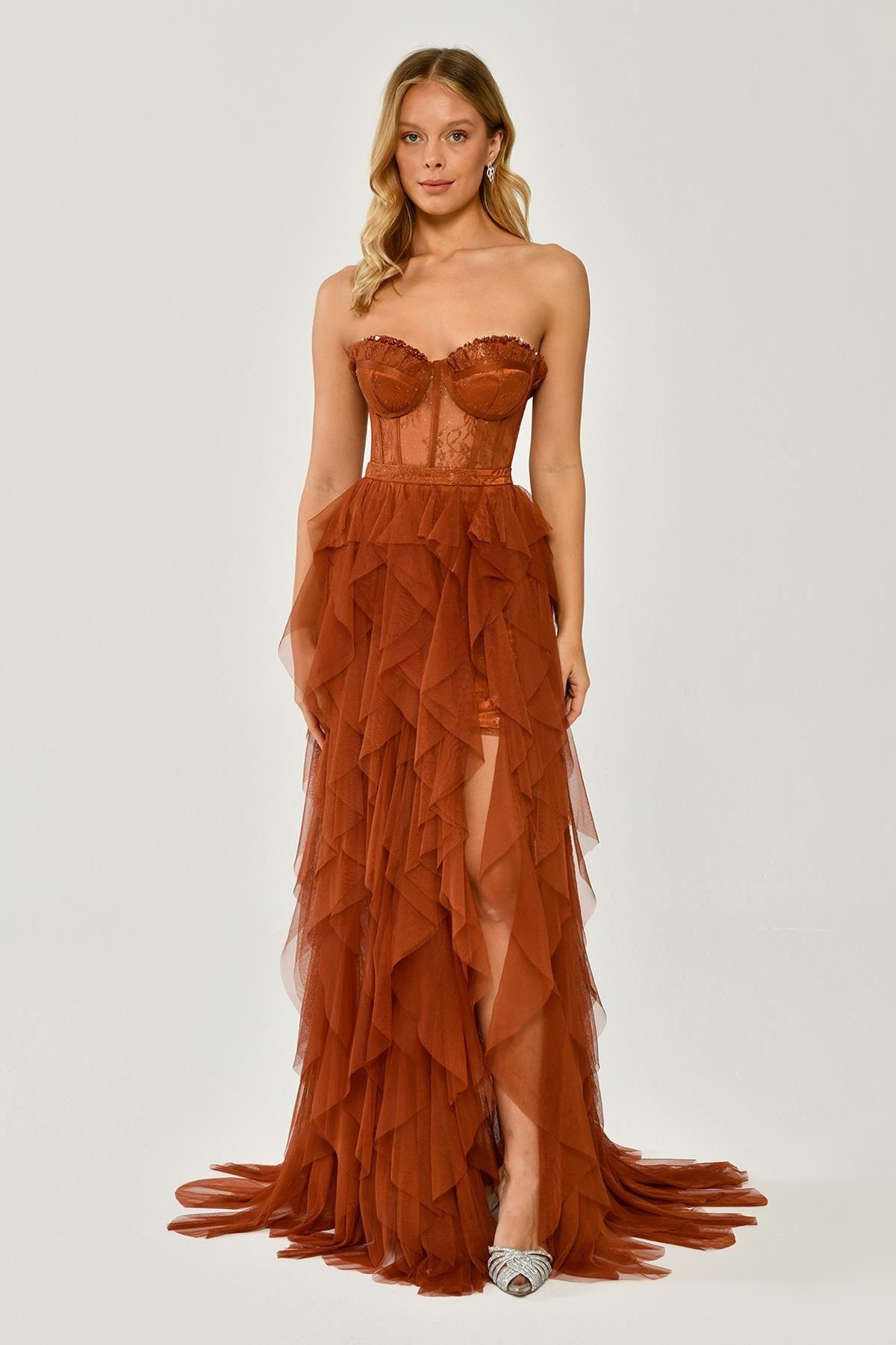 HANZADE ALTAYLIStraplez Yırtmaçlı Katlı Tül Elbise