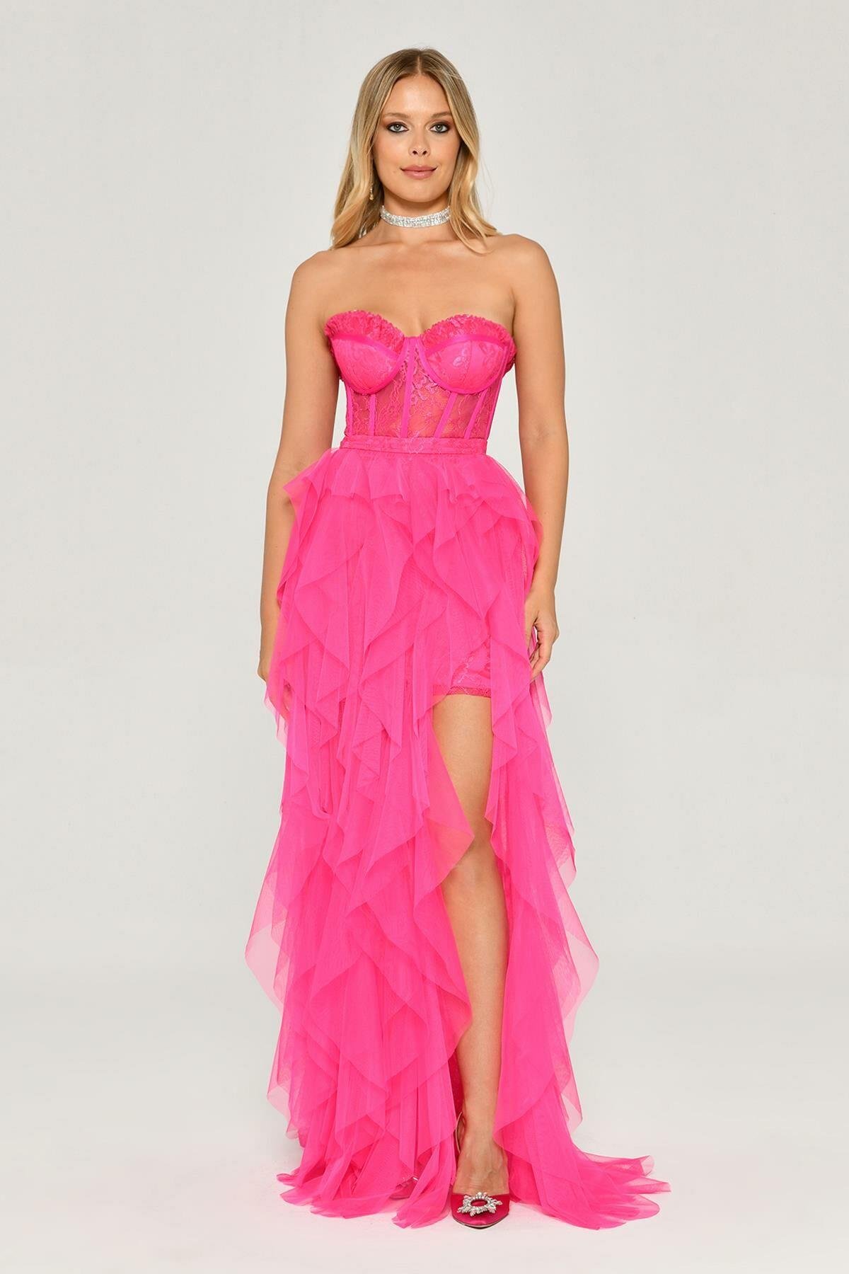 ALFABETAStraplez Yırtmaçlı Katlı Tül Elbise