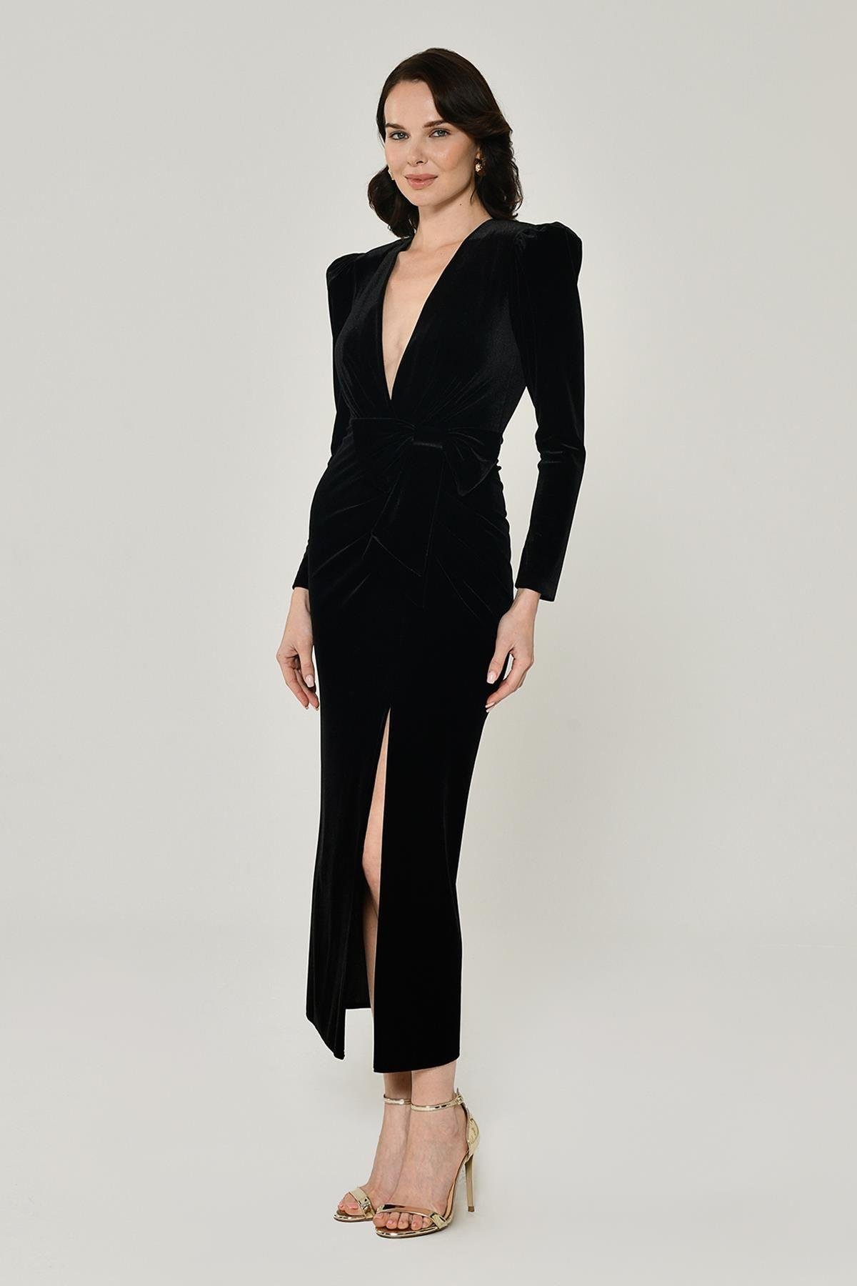 HANZADE ALTAYLIUzun Kol Derin V Yaka Kadife Uzun Elbise