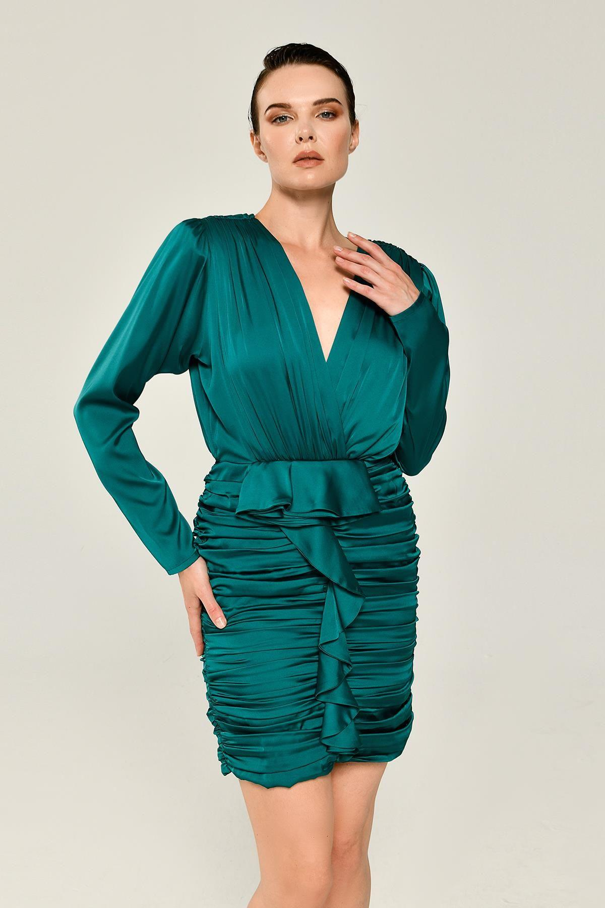 HANZADE ALTAYLIV YAKA UZUN KOL KISA ELBİSE